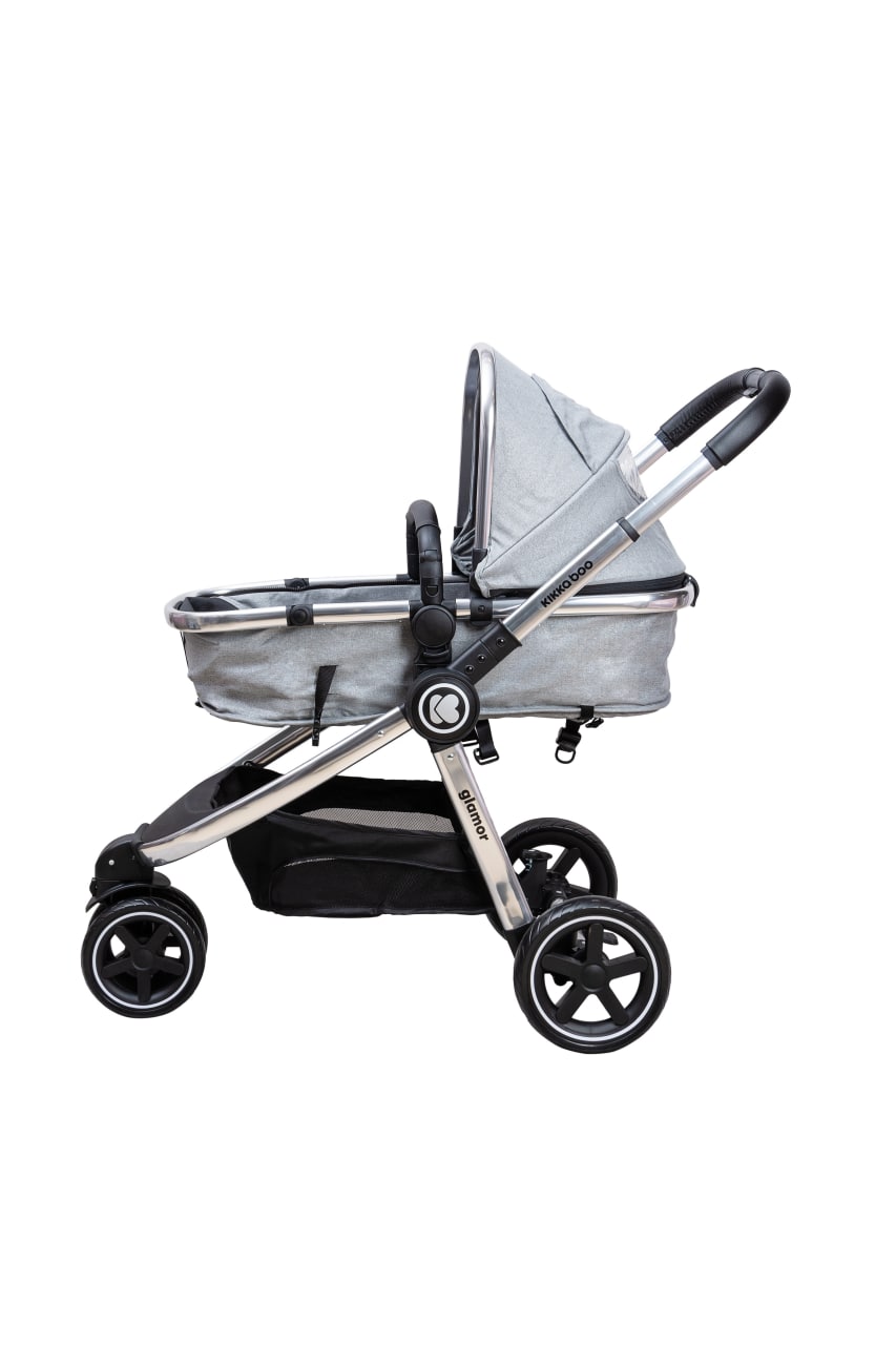 معرفی سرویس کالسکه Kikkaboo Glamor کیکابو: یکی از اقلامی که در سیسمونی بسیار مورد توجه است و وسواس خاصی در خرید دارد، کالسکه و یا ست کالسکه و کریر است. کالسکه با کیفیت امنیت کودک شما را تضمین می کند. در بیرون از منزل و مسافرت، در آغوش گرفتن طولانی مدت نوزاد و کودک دلبرتان ممکن است کمی خسته کننده باشد که با استفاده کالسکه مناسب نگرانی بابت این موضوع وجود ندارد. کالسکه مناسب حمل و نقل را برای شما آسان تر می نماید و راحتی و آسایش را به شما و کودکتان هدیه می کند. برند کیکابو با ارائه محصولاتی با کیفیت و دارای گارانتی، آسایش و راحتی را برای شما فراهم می آورد. سرویس کالسکه Glamor ساخته شده از اسکلت آلومینیومی لوکس، سبک و مقاوم، و پوشش کروم می باشد. از ویژگی های بارز و جذاب این کالسکه تاشو بودن و سهولت در جابجایی است. این ست شامل: کالسکه، کریر، آداپتورهای صندلی ماشین و پد اضافی برای نشیمن می باشد