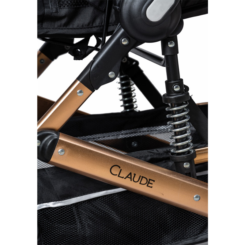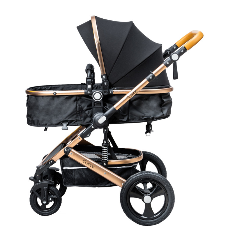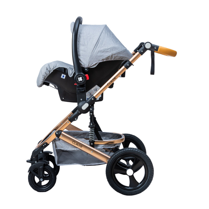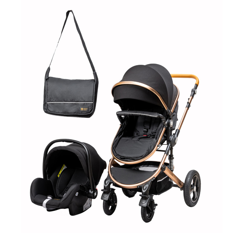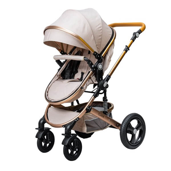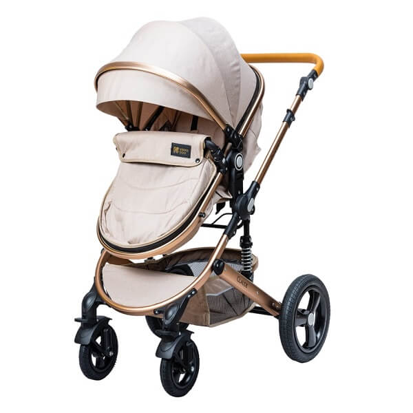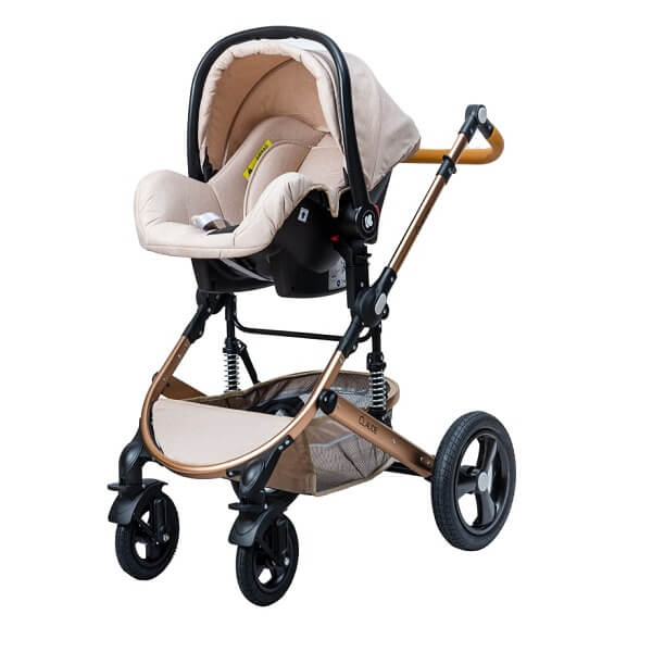 کالسکه این سرویس کالسکه دارای ویژگی های جالبی می باشد . که تبدیل سیت کالسکه به کریکات از مهمترین ویژگی های این محصول می باشد. در ضمن تغییر جهت سیت روبه مادر و برعکس از مهم ترین خواسته های مادران می باشد. جنس بدنه مستحکم آلومینیومی با رویه ی طلایی رنگ و چرخ های بزرگ و فنر بندی خاص این محصول حرکت در مسیرهای ناهموار را بسیار راحت و آسان می کند. چرخ های جلوی این محصول قابلیت چرخش 360 درجه دارد. سایبان گسترده همراه با سبد بزرگ از دیگر ویژگی های این محصول می باشد.برای بیشتر کودک شما کمربند 5نقطه ای و ترمز مستحکمی در نظر گرفته شده است. در ضمن دسته این محصول قابلیت تنظیم نسبت به قد والدین را دارد.