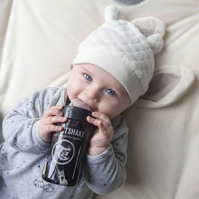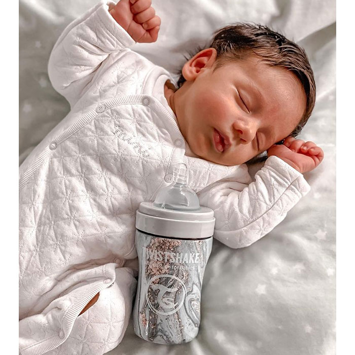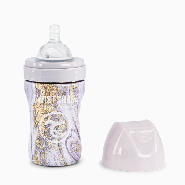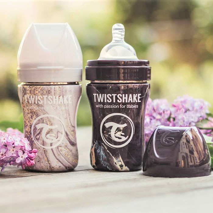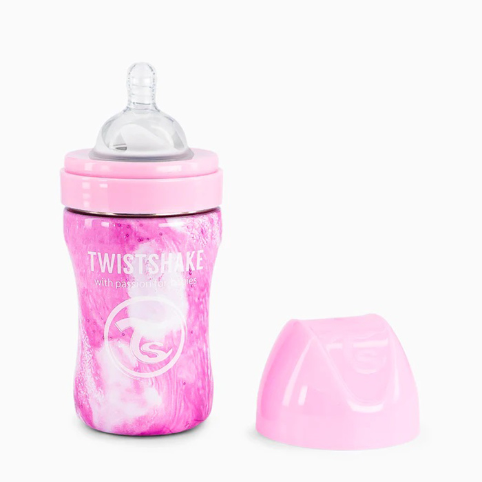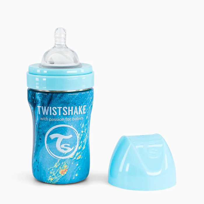 برند سوئدی Twistshake تویست شیک دارای بدنه استیل ، سرشیشه سیلیکونی، طراحی آرگونومیک و سری ضد نفخ مناسب نوزادان 5 ماه و بزرگ تر می باشد.