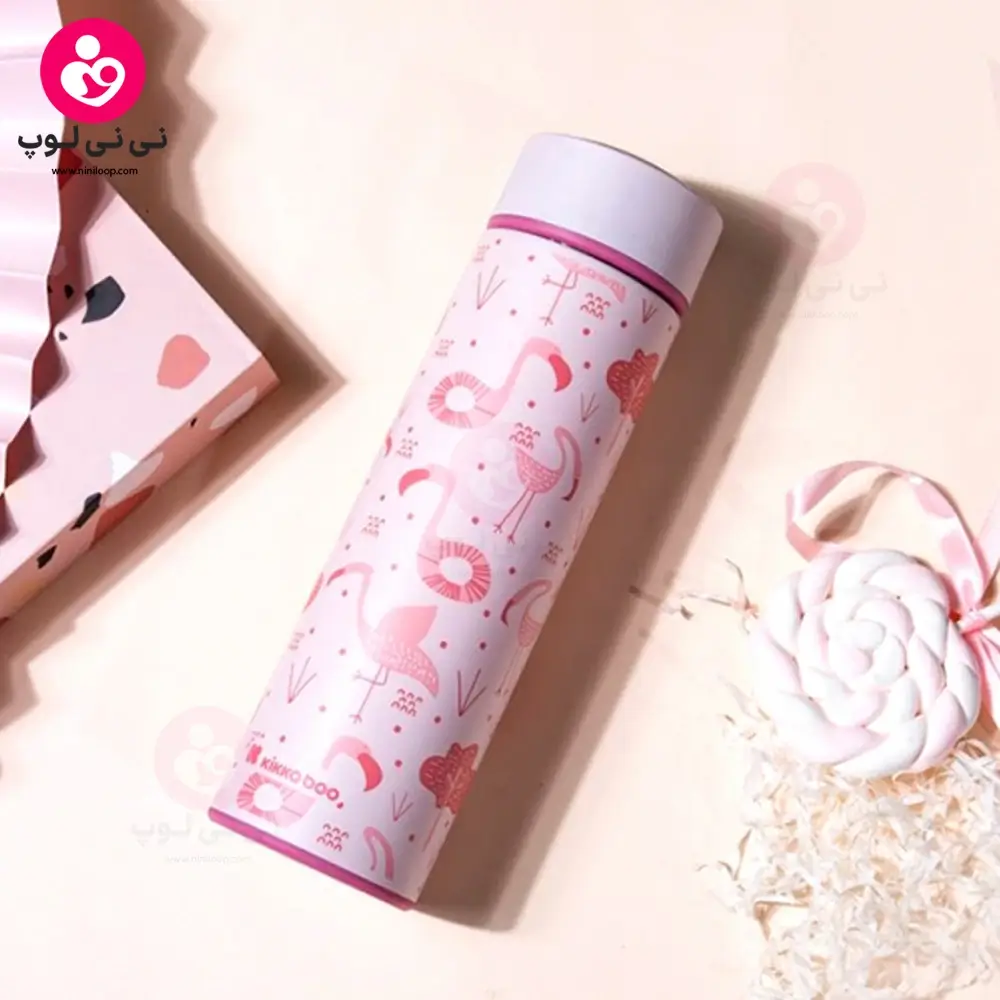 فلاسک آب 500 ميل فلامینگو كيكابو Kikkaboo طراحی بازیگوشی دارد و برای پیاده روی های طولانی در خارج از خانه مناسب است. از مواد مرغوب و با فولاد ضد زنگ دو جداره ساخته شده است که دمای مایعات را تا حد امکان حفظ می کند.